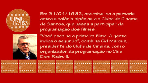 Em 2019, Cine Inês montou um vídeo a partir do artigo de Cid Marcus, iniciando um projeto de Leitura Crítica audiovisual, imagem e texto, de produções cinematográficas, filmícas e afins. Confeccionou também uma sequência de cartões, adiante expostos, sobre a ligação do cineclubismo em Santos com o cinema nipônico e a colônia japonesa.
