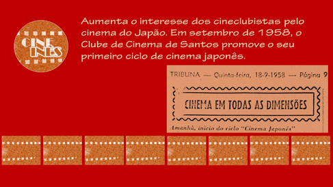 O cineclube santista vinha divulgando a cinematografia do Japão desde a década de 1950, quando estabeleceu parceria com a comunidade local de imigrantes japoneses, que mantinham uma sessão semanal própria no Cine Dom Pedro.